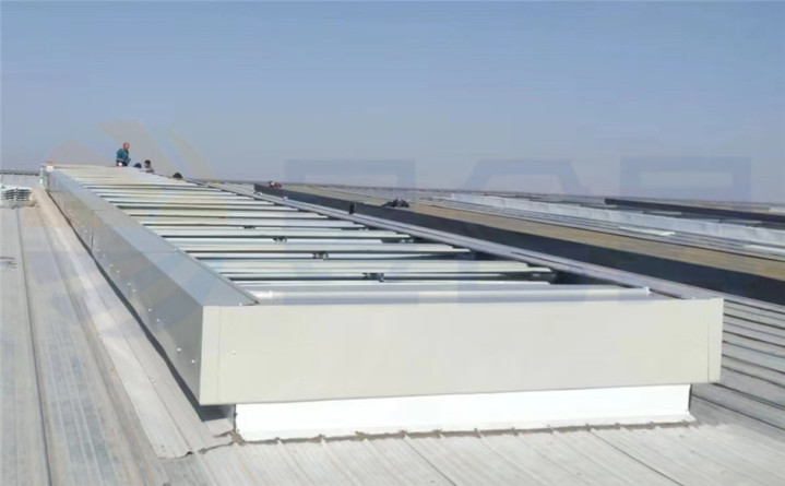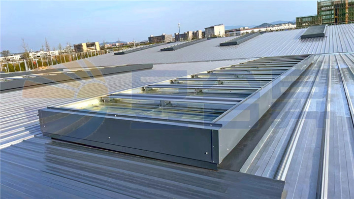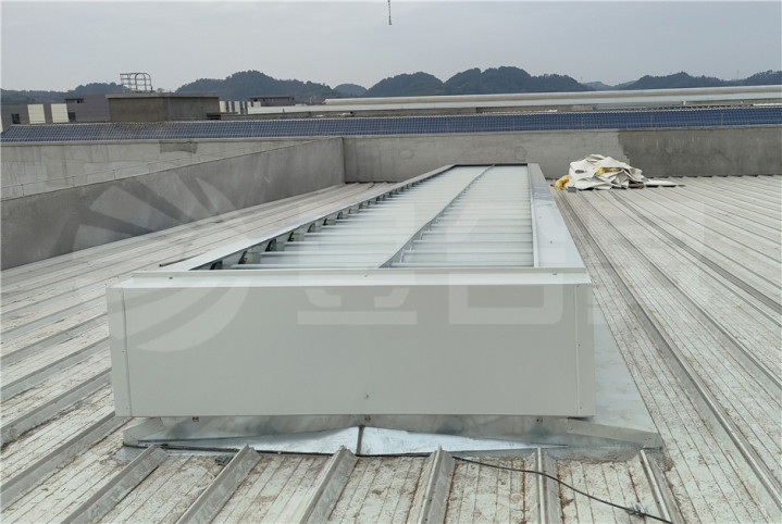 2、低阻高效设计:通风天窗采用并列风道式/间隔风道式结构,风道与热空气上升方向一致,气流阻力小,单台通风量可达5000m³/h;通风天窗窗体高度仅约300-630mm,风阻比流线型通风天窗低40%,抗风压能力达1.2kPa,适合多风、沿海地区。