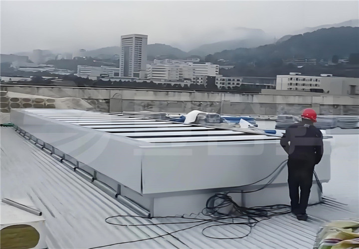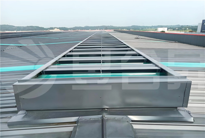 3、三重防水防护:薄型天窗多层挡雨板设计,上层防飘雨、中层导水流、下层强排水;底座与屋顶接缝处用专用密封胶+防水卷材双重密封,集成式排水槽直接对接屋面排水系统,杜绝漏水隐患。