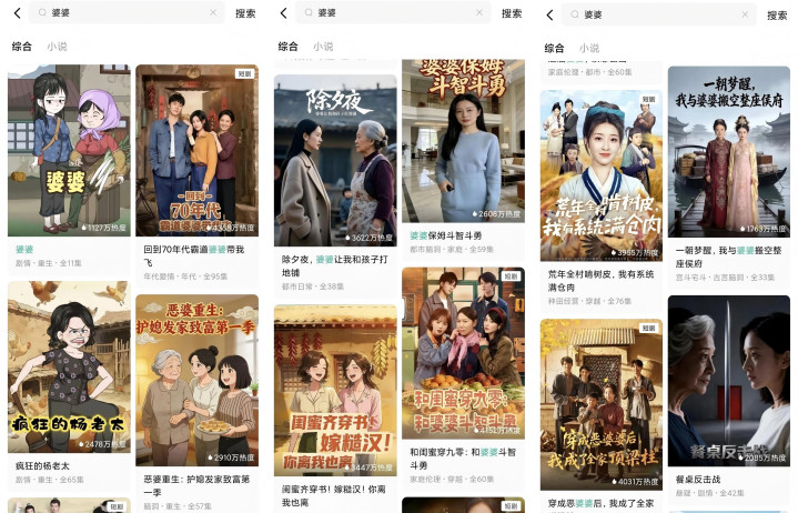 跳出“年轻女孩闯年代”的固定模式,它们以重生、穿越、特殊能力为切入点,让老太太当主角,重点讲家庭管理、自我觉醒和人生翻盘。